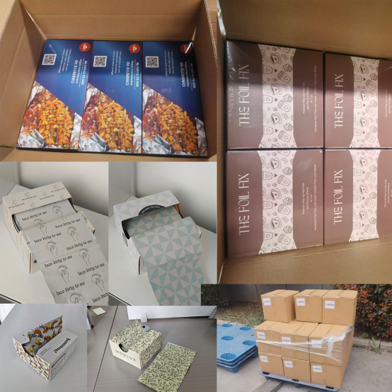 - Custom OEM/ODM options — Thickness (13–18 microns), embossing style, colors (silver, gold, rose, black, etc.), logo printing, non-stick coatings, branded dispenser boxes & outer cartons